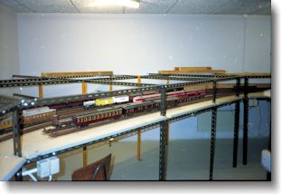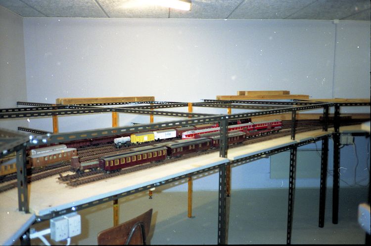 Begyndelsen I februar 1985 samledes, i et mødelokale på Aalborg station, en halv snes jernbaneinteresserede mennesker med henblik på at danne en modeljernbaneklub med det nordjyske som forbillede. På det tidspunkt var der ikke ret dansk modeltog at købe i butikkerne så selvbyg var eneste vej, hvis modelanlægget skulle have et nordjysk afsæt. Og her kommer så modeltog i skala 1:45, spor-0, ind som en oplagt mulighed idet der ved bygningen af modeltog var mange flere muligheder for at få detaljer med på modellerne end hvis skala 1:87 var blevet valgt. Med til historien hører også, at der indtil ca. 1973 var en spor-0 klub i Aalborg, AMJK, og nogle af mødedeltagerne havde haft sin gang i den hedengangne klub. Initiativtagerne til mødet havde forud for mødet haft en snak med DSB´s daværende områdechef om muligheden for at finde et egnet lokale på stationen i Aalborg. Et par større loftsrum blev på det tidspunkt anvist som en mulighed, men man skulle lige vente til en planlagt tagrenovering var blevet gennemført før den påtænkte klub kunne rykke ind. Med dette tilsagn i baghovedet blev klubben dannet. For ikke at blive opfattet som en videreførelse af den gamle klub blev den nye klub kaldt Aalborg Model jernbane, AbMJ. Et sæt vedtægter blev hurtigt sat sammen, og man begyndte regelmæssigt at samles enten i mødelokalet på stationen, eller i veteranbanens, Limfjordsbanen, lokaler på Forchhammersvej. Man samledes dels om udveksling af tips og ideer ved modelbygning, dels blev adskillelige oplæg til sporplaner for loftslokalerne drøftet og der blev snakket en hel del om, hvordan man skulle gribe opgaven an når nu tagrenoveringen forhåbentlig snart var gennemført. Riihimäkivej Efterhånden som tiden gik og tagrenoveringen blev udsat flere gange begyndte klubben at se sig om efter et andet egnet lokale. På det tidspunkt havde Danmarks Tekniske Museum etableret en afdeling på Riihimäkivej i Aalborg og en henvendelse hertil blev fulgt op af et tilsagn om at vi kunne bygge et anlæg i et separat baglokale. Eneste betingelse var at anlægget skulle være tilgængeligt for publikum i museets åbningstid. En sporplan blev hurtigt besluttet og bag en glasfacade blev et punkt til punkt anlæg begyndt opbygget. Via et par sporskiftegrupper kunne anlægget også virke som en rundbane og publikum kunne via et møntindkast få en togstamme til at befare dette spæde anlæg. Publikum tog hurtigt det nye anlæg til sig, og mange besøgte jævnligt museet for at se, hvor langt man nu var kommet. Og de kroner der blev puttet i møntindkastet var en god hjælp til anskaffelsen af diverse materialer. Der var god gang i byggeriet og snart var alle anlægsborde på plads og relativt kort tid efter kunne vi køre fra endestation til endestation, i hovedsporet vel at bemærke. Succesen gik imidlertid en af museets store bidragsydere til hovedet idet han mente at fokus fra publikums side nu var blevet fjernet fra hans gamle skibsradioer til fordel for en modelbane og vi skulle ud af bygningen for ellers ville han trække sit bidrag ud af museet. Vi fik 3 måneder til at pakke samme i! (Relativt kort tid efter lukkede museet og samlingerne blev kørt til Helsingør, hvor de vist nok stadig samler støv i magasinerne) Klubben var nu husvild. Men med god støtte af veteranbanen kunne vi atter få lov at samles regelmæssigt i deres lokaler for at holde humøret højt. Og vi fik til og med lov til at opmagasinere vort grej i en stor lukke godsvogn ejet af Limfjordsbanen. Tornhøjvej I vor søgen efter egnet lokale kom vi vidt omkring. Men det var som om at, hver gang vi havde fundet en mulighed, så var der en eller anden betingelse vi ikke rigtigt kunne leve med. Men endelig var lokalet der. Et sikringsrum under en skole skulle indrettes som magasin for diverse skolegrej, men der var et areal i overskud, ca. 120 m2, og det kunne vi så få lov til at benytte. Der gik det meste af en vinter med at opsætte skillevægge, male og gøre rummene klar, og så kunne vi rykke ind! Vi havde i ventetiden endevendt mange muligheder og lavet adskillelige sporplaner. Til slut efter et par justeringer blev vi enige og arbejdet med opbygningen af anlægget kunne gå i gang. Grundideen var, at tet faste anlæg skulle være typisk fra perioden 1960 - 1980, og det rullende materiel skulle være passende hertil. Den vedtagne sporplan blev efterhånden omdøbt til en "bordplan" fordi vi hele tiden har været åbne for ændringer og tilføjelser. Vi har stadigvæk holdt fast i at have et afsæt i det nordjyske. Lokalernes størrelse taget i betragtning kan vi ikke lave eksakte modeller af nordjyske stationer, men lokaliteten er fastholdt i modeller af nordjyske stationsbygninger, posthuse med mere. Vi har opbygget en privatbane der går fra Aabybro via Østerild og Jerup til Frederikshavn, og en statsbane der går fra Frederikshavn via Ellidshøj og Aalborg til Hobro. Hobro er eneste station uden bygninger idet det er en skjult sporrist til opstilling af togstammer. Privatbanens fortsatte eksistens er berettiget af transport af skoleelever til og fra skolerne i Frederikshavn samt af transporter til og fra et slagteri. Det giver ikke banen den bedste økonomi, hvorfor det rullende materiel er en lidt rodet skrab sammen af brugt materiel anskaffet fra andre eksisterende eller nedlagte baner i landsdelen. Statsbanen overgår som i virkeligheden fra dobbeltspor til enkeltspor i Aalborg og banen befares af både lokaltog og fjerntog. Og det gælder både gods og persontransporten. Lokalerne på Tornhøjvej har været rammen om klubbens virke i de næste godt 20 år. Anlægget blev heldigvis, hverken helt eller halvt færdige, selv om næsten alle klubbens medlemmer møder op klubaften efter klubaften. I 2015 fik vi desværre besked på, at vi ikke længere kunne benytte lokalerne idet bygningen skulle rives ned for at give plads til et nyt plejehjem. Her er en lille film fra det gamle anlæg 2015. Filstedvej